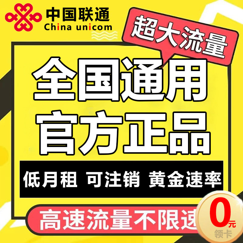 中国联通流量卡纯流量上网卡手机卡电话卡5G不限速流量卡全国通用