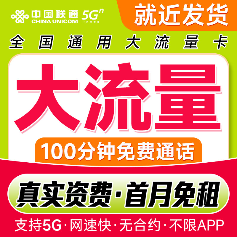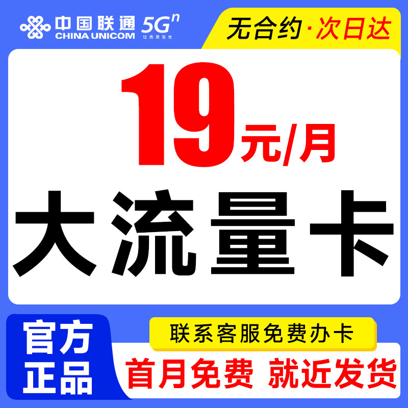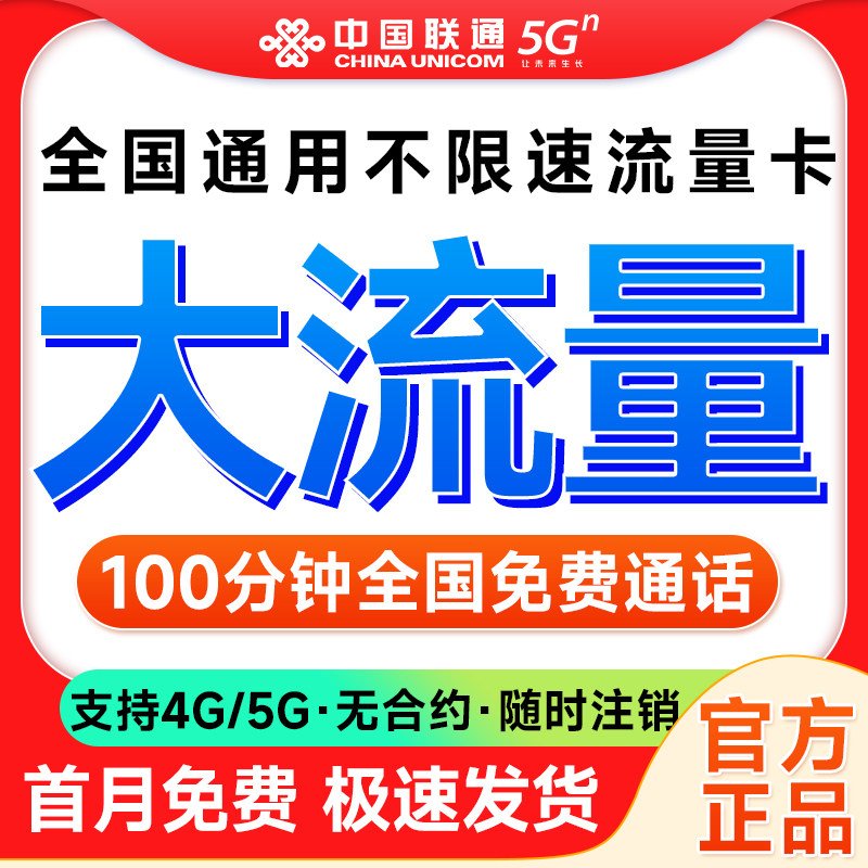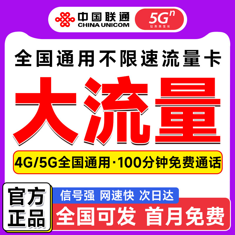 联通流量卡全国通用联通流量卡纯上网5g无线限流量套餐卡官方发货